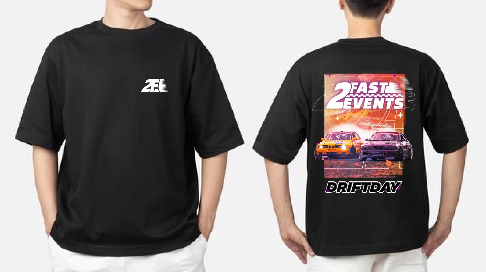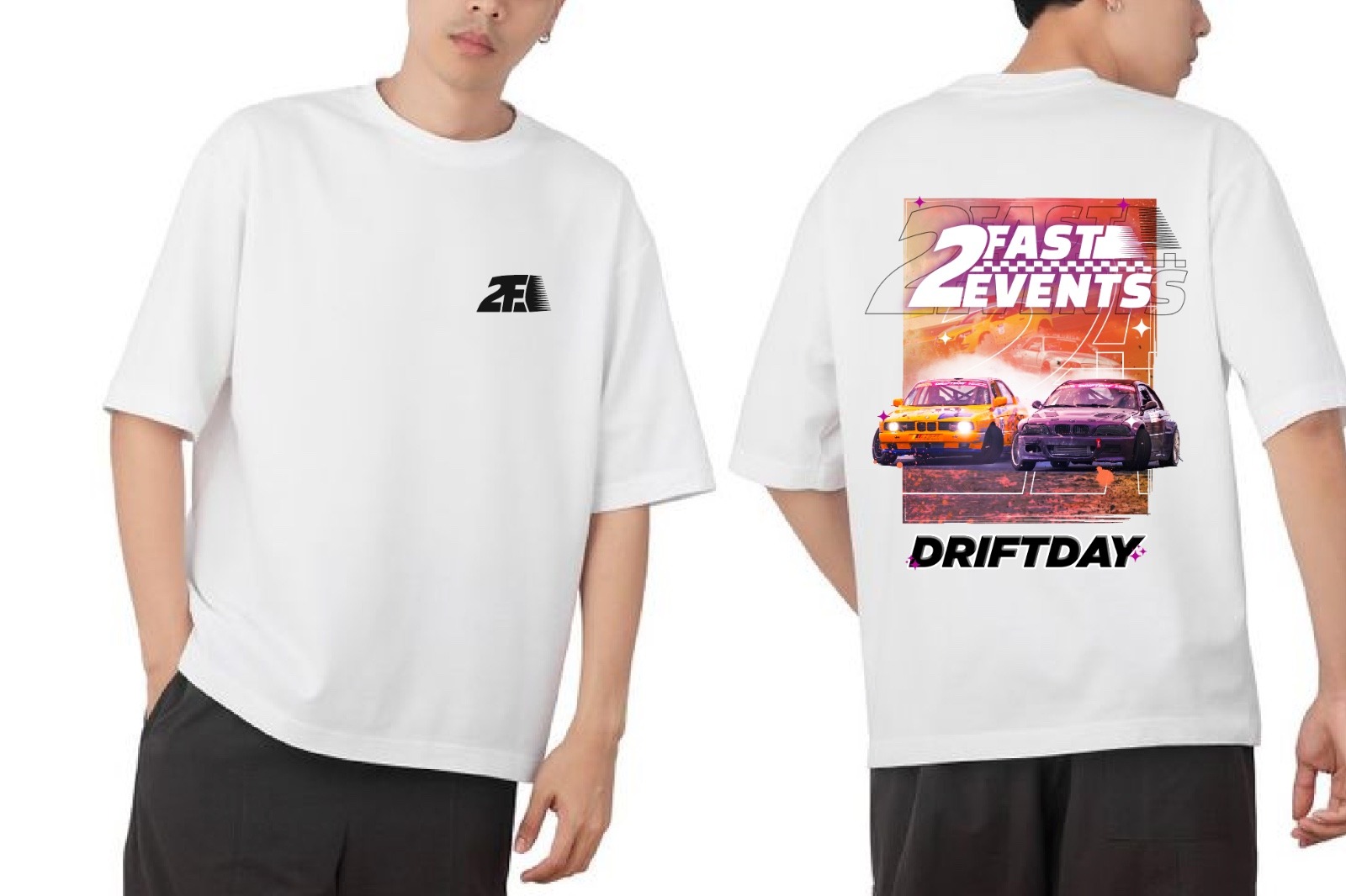 Logo 2FAST a modo escudo en el pecho y diseño estampado en la espalda DRIFTDAY 2025 edición limitada a 50 unidades.
